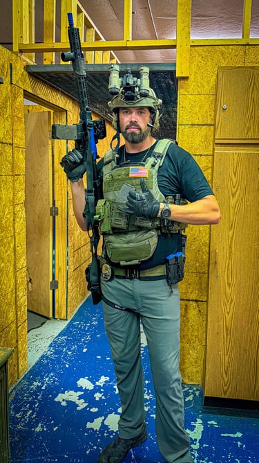 Chad was determined to elevate his professional skills and take his instruction abilities to the next level, which led him to enroll in the Blu Bearing Solutions 'Protector Mindset' course, as well as a rigorous 40-hour Close Quarters Battle (CQB) instructor course. This ambitious decision was fueled by his commitment to providing top-quality instruction to his students, ensuring that they received the best training possible. The 'Protector Mindset' course promised to deepen his understanding of the psychological aspects of protection, while the CQB course would equip him with advanced tactical skills essential for real-world scenarios. By immersing himself in these comprehensive training programs, Chad aimed not only to enhance his own capabilities but also to inspire confidence and professionalism in those he taught. Chad is excited about the journey ahead and looks forward to welcoming everyone to his classes for many years to come.